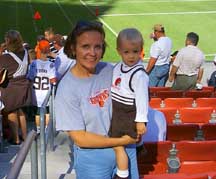 During her membership, Olivia received quarterly newsletters, Browns t-shirt, Dawg Pound towel, baseball cap, magnetic photo frame, flag, notebook, and numerous other items. She also received McDonald’s coupons, even though she never had a chance to use them; and, a 10% discount at the Team Shop at Cleveland Browns Stadium; even though she preferred pennies to dollars, there was nothing to be had at the Team Shop for pennies. The enjoyment of Olivia’s membership was when she and her mommy went to the Browns Stadium to watch the Cleveland Browns Prime Time Preview on Thursday, August 8, 2002.